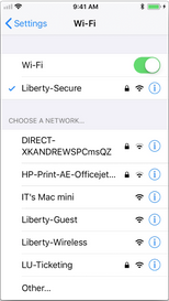 Note: The Liberty-Wireless network is for onboarding purposes and will not allow a direct connection with external websites/resources.