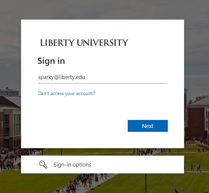 2. A browser window should appear - log in with your full Liberty email address and password.