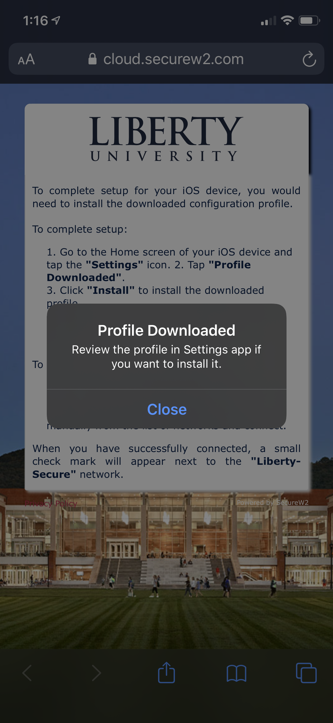 Note: Liberty-Wireless is only used to allow you to go through this process and does not allow access to other websites.