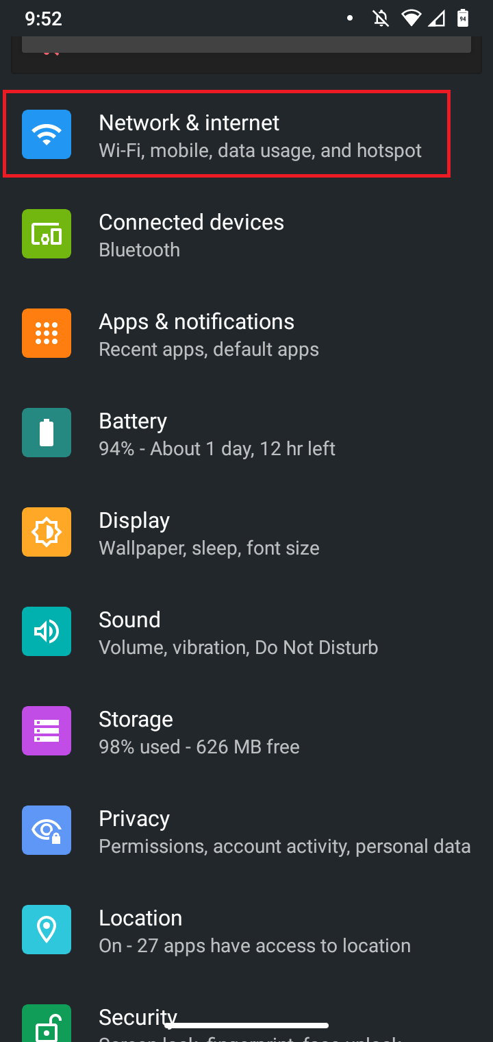 - Tap Network & Internet.
