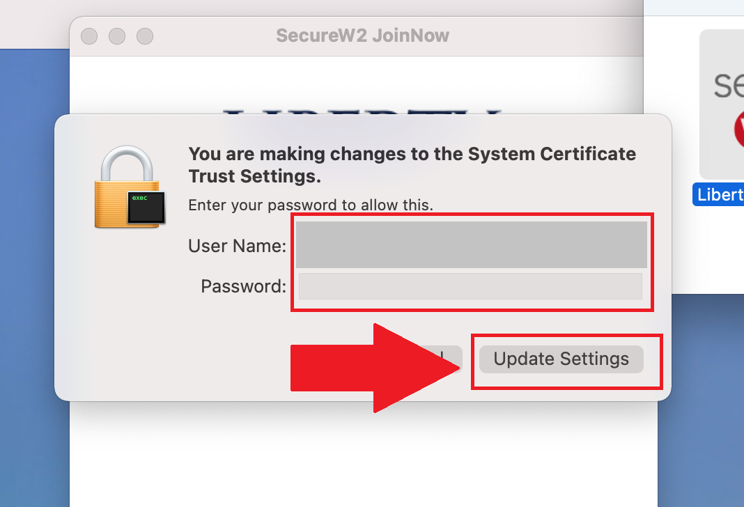 8. Then you may be prompted for the password to liberty or your computer, enter the required password, and select Always Allow.