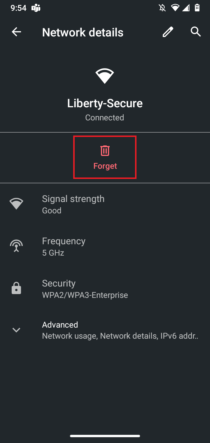 - Forget Liberty-Guest and/or Liberty-Wireless networks.