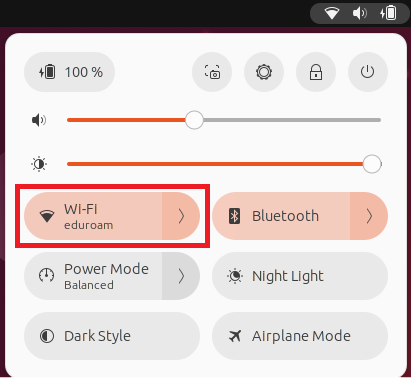 Select the wireless antenna icon on the top-right corner of the screen to show the list of available wireless networks. Click on Liberty-Wireless to connect.