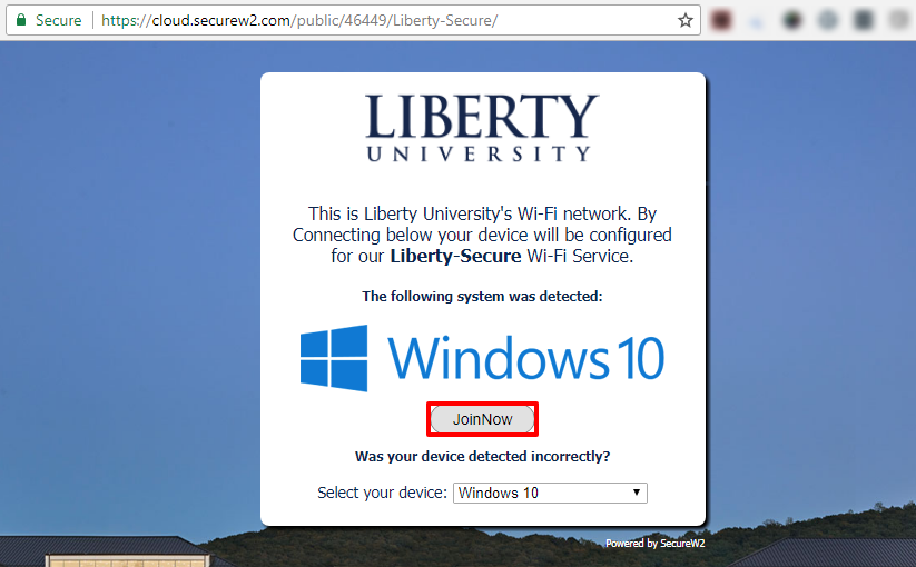 • On a mobile device, go to networks, and reconnect to "Liberty-Secure"