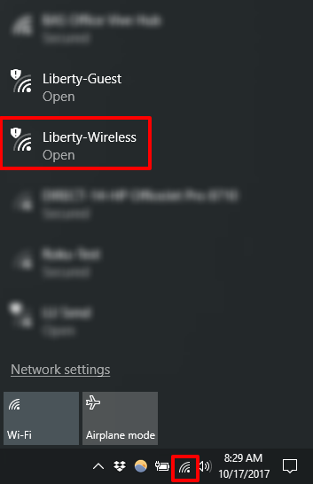 The steps below will be used to connect your devices to the Liberty Wi-Fi networks